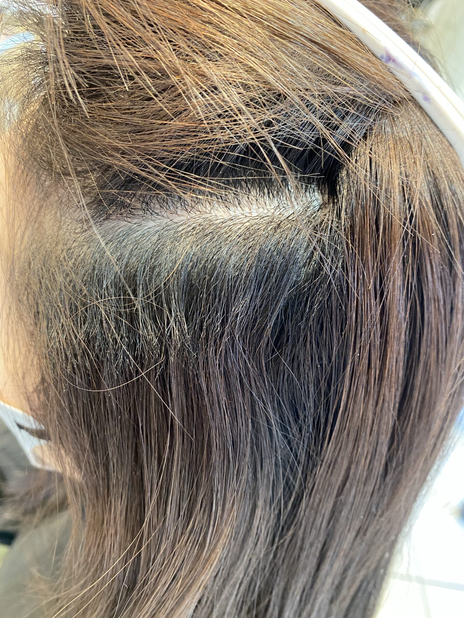 薬剤(1液)を頭皮付近に