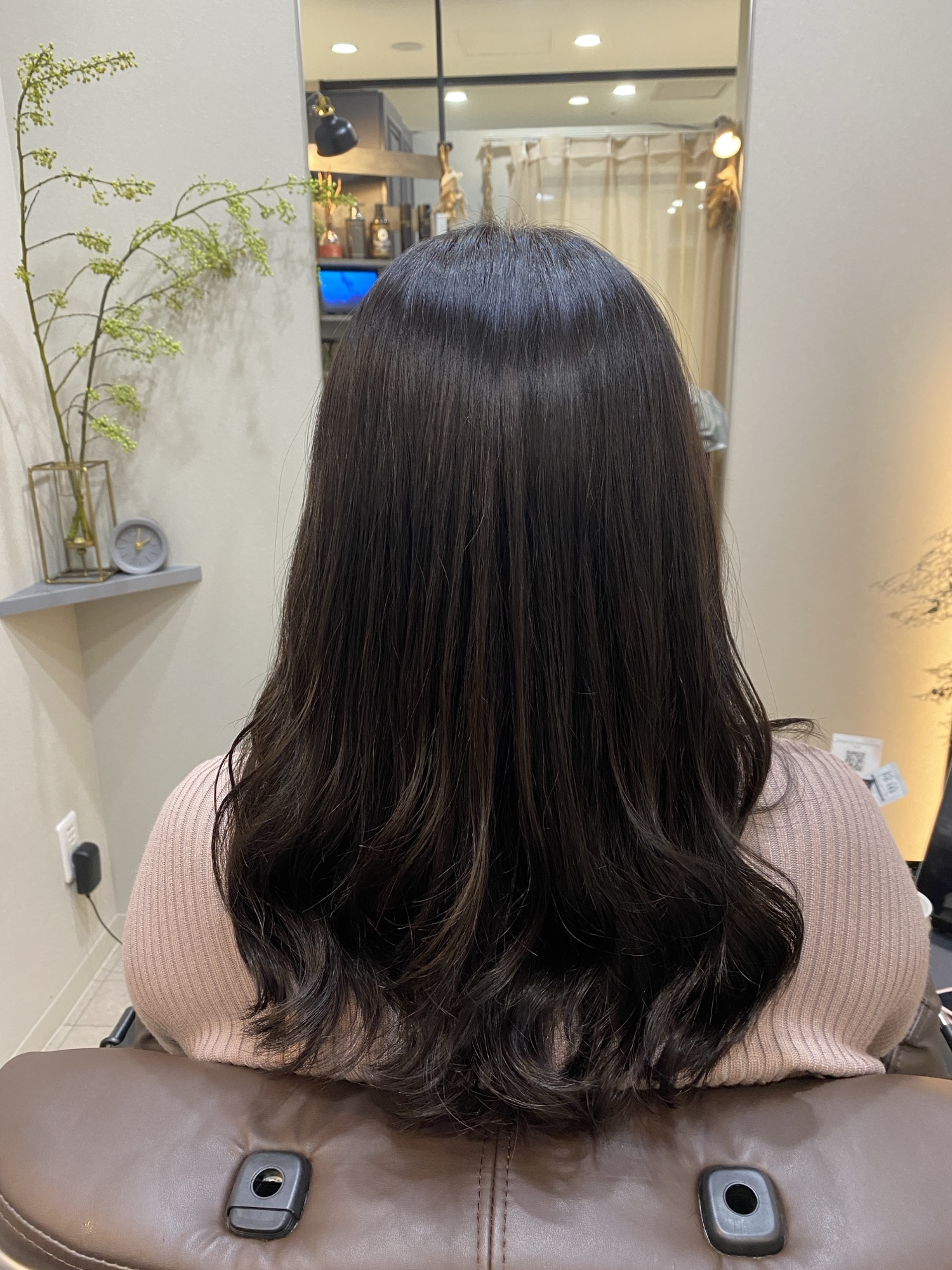 毛先にパーマをかけさせていただいております
